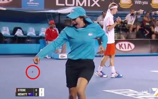 男單第二輪賽事為「澳洲野兔」休威特(Lleyton Hewitt)對上德國小將史特比(Cedrik-Marcel Stebe),當比賽正膠著時,史特比突然暫停比賽,稱有隻蟋蟀在他的底線附近。史特比當然不可能用球拍撈走這隻蟋蟀,因此希望球僮能幫個忙。