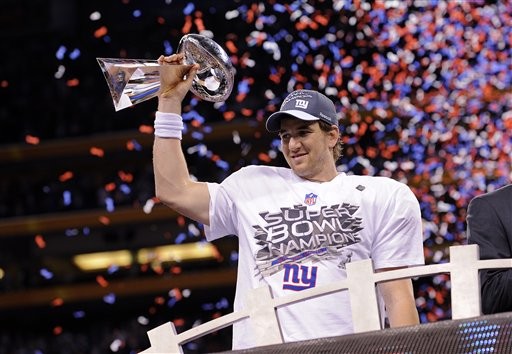 ▲巨人隊曼寧開心地舉起超級盃。(圖/達志影像/美聯社)