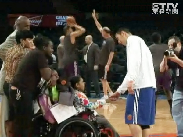 今天全台灣最關注的賽事還是林書豪的比賽,紐約尼克隊回到主場對上來訪的沙加緬度國王隊,比賽開始前,林書豪輕鬆練投,親切的他看見行動不便的小球迷主動上前握手致意,沒想到場上粉絲越聚越多,當場開起了簽名會。