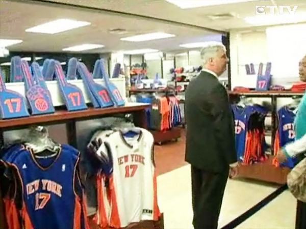 林書豪的球衣有多夯?麥迪遜花園廣場裡面的商店都擺不下,還特別設一個專區在外面來應付球迷的需求,不要以為只有年輕人瘋林書豪,連西裝筆挺的中年人也搶著買林的球衣,「我買林書豪的球衣給我兒子,因為他是林的頭號大球迷,我也很喜歡林(記者:有多喜歡?),非常喜歡!」
