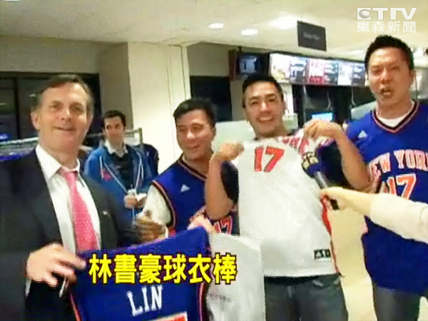 尼克隊球場商店經理表示,「今天我們終於調到貨進來,可以說整個商店都是林書豪的球衣,因為每個人都在問林的球衣,我們得要給球迷他們想要的。」一位林書豪球迷說,「我們買了好多林的球衣,明天還要來買別的顏色的,林來瘋將是最高指導原則,林書豪加油!」