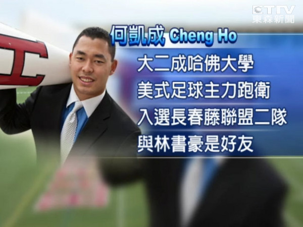 「哈佛小子」林書豪(Jeremy Lin)揚名全球體壇,其實他在哈佛大學還有一個同學,同樣來自台灣也是運動名人,名叫何凱成,是第一個在美式足球隊裡當四分衛的台灣球員,現在何凱成改行在北京工作(北京NFL協調員),東森新聞獨家專訪他,何凱成透露,雖然現在林書豪全球知名,但是去年(2011)其實他已經沮喪到了極限,隨時可能放棄進軍籃壇。