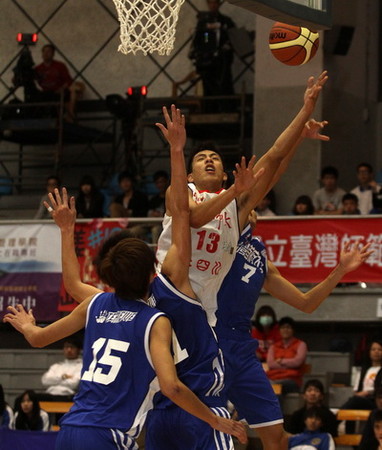 ▲臺師大洪康喬(右)人堆中切入禁區取分。(圖/大專體總提供)