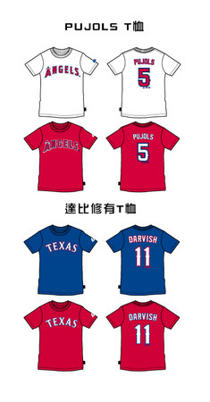 ▲天使隊普侯斯(上)與遊騎兵隊達比修有(下)的短T。(圖/創信提供)