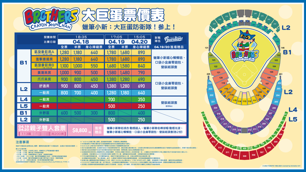 ▲中信兄弟蠟筆小新主題日票價表。(圖/中信兄弟提供)