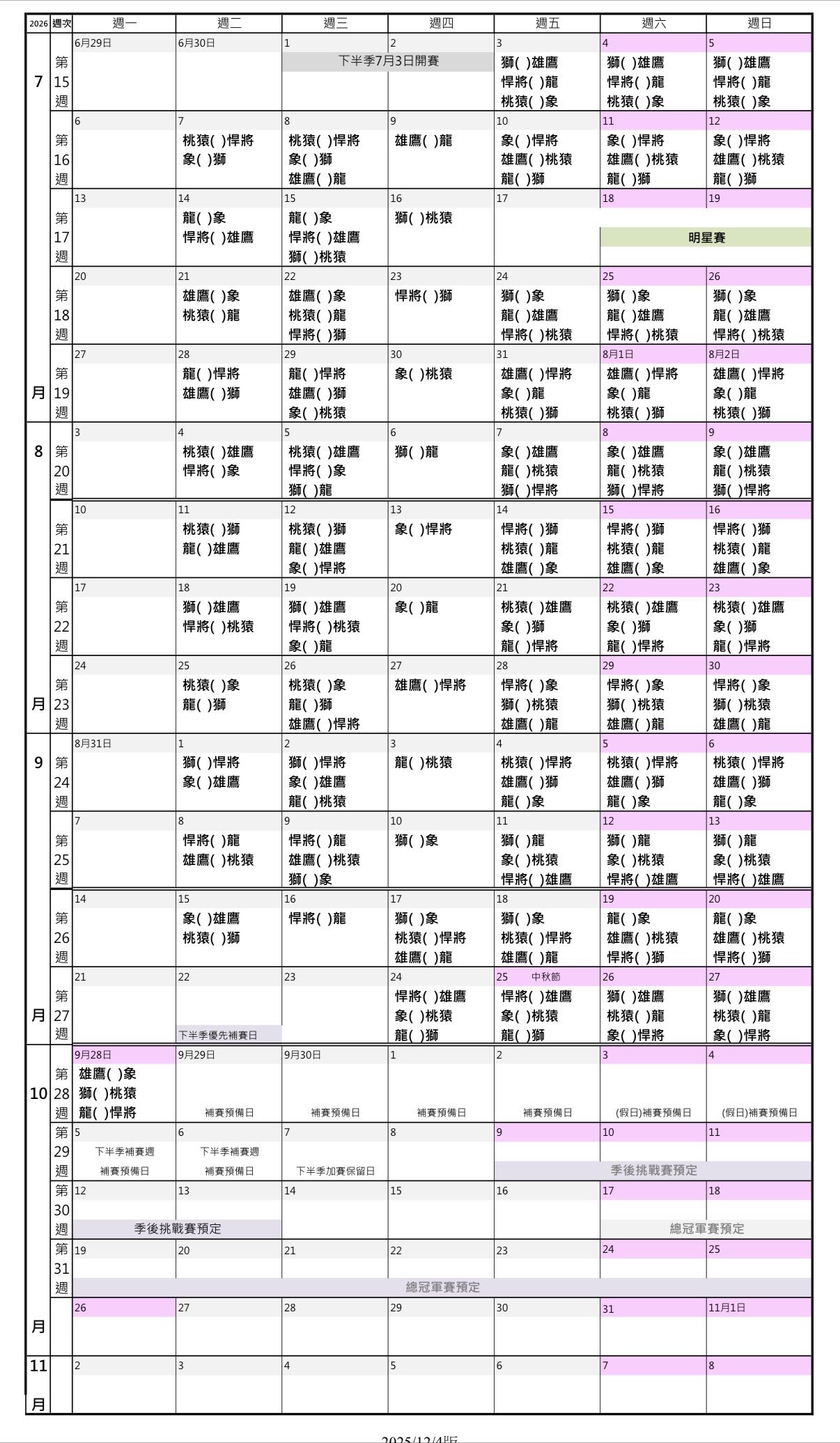 其他重要時程也一併出爐:下半季7月4日開打,明星賽於7月18、19日登場;中職季後挑戰賽暫訂10月9日開打,總冠軍賽則預計是10月17日。
