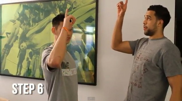 ▼看林書豪和菲爾斯親自分解的打氣動作