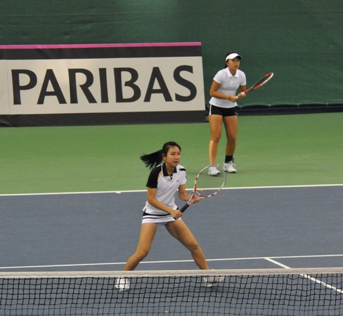 因腹膜炎開刀養傷、世界排名跌至1017位的阮庭妃則擔綱中華隊第二點單打,中國隊則派出世界排名49的張帥。阮庭妃因久未參賽,對球的掌控不佳,移位速度也不理想,被張帥以兩個6:0直落二取勝。