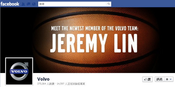 ▲富豪汽車的臉書封面,已秀上大大的林書豪英文名字。(圖/取自Volvo臉書)