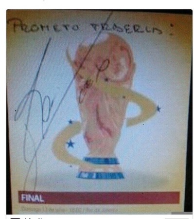 目前梅西已經飛回阿根廷,正在與他的家人享受國家隊集訓開始前的優閒時光,近日他帶女友安東內拉(Antonella)和兒子蒂亞戈(Thiago Messi)外出吃飯時,被眼尖的球迷發現,紛紛向他索取簽名和合照,這位巴薩明星前鋒也相當配合,還在一張印有世界盃獎座的卡片上寫下,「我承諾會將它帶回來。」