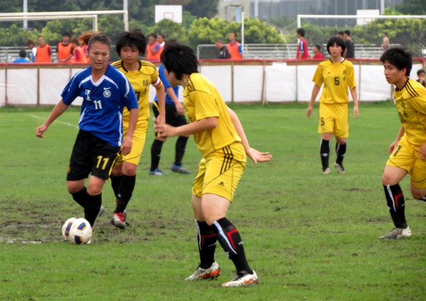 2012女子甲組春季足球聯賽,14日在台北百齡足球場,由汐止俱樂部對戰醒吾中學,前輩林玉惠上半場連進2球,汐止最終以2:1小勝。