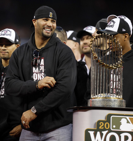 美國職棒世界大賽台灣時間29日落幕,憤怒鳥紅雀演出大逆轉,摘下今年世界大賽冠軍,接連的慶祝活動與遊行活動將和球迷一起在聖路易盡情狂歡,眾多球迷擠爆整個城市,報導指出所有球迷都殷切的盼望穿著五號球衣的紅雀看版球員普侯斯(Albert Pojuls),能夠繼續留在聖路易。