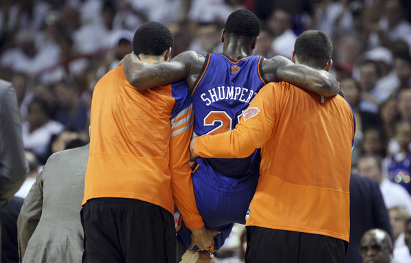 2011-12年季後賽在29日正式開打,首輪第一戰紐約尼克33分慘敗給邁阿密熱火,輸球並不讓人灰心,往後還有扳回戰局的機會,讓人心碎的是尼克的「傷兵魔咒」持續延燒,陣中菜鳥夏普特(Iman Shumpert),左腳膝蓋十字韌帶撕裂退場。