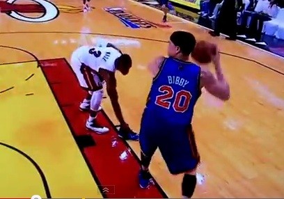 紐約尼克與邁阿密熱火季後賽首輪第二場比賽,除了精采的正面對決之外,雙方也不忘「來陰的」,第二節熱火隊「閃電俠」韋德(Dwyane Wade)竟然將尼克控衛畢比(Mike Bibby)的鞋子丟掉,而「甜瓜」安東尼(Carmelo Anthony)即刻復仇,得分之後,用球砸向查默斯接近臉的地方,雙方一報還一報。
