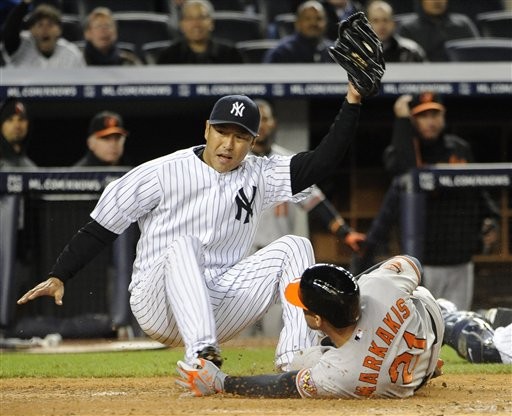 儘管三振了戴維斯(Chris Davis),黑田卻又再次送出暴投,三壘上的馬卡奇斯(Nick Markakis)看機不可失,快馬加鞭衝回本壘,不過洋基投捕搭檔默契相當好,馬丁(Russell Martin)撿到球後,馬上反手側身傳給補位迅速的黑田,跑者因此在本壘被觸殺出局,金鶯反撲不成,最後就以1分飲恨。