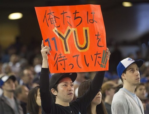 藍鳥球迷等待許久,達比修終於在多倫多「出道」,只是他身穿遊騎兵球衣,是藍鳥的對手。當初達比修的競標炒得沸沸湯湯,有美國記者搶先爆出藍鳥得標的消息,後來才確定是由遊騎兵出線。儘管如此,達比修當初還是有極大可能會穿上藍鳥球衣。對此達比修也表示,在這個球場投球,想到有可能為這個球隊效力,「有點不可思議的感覺。」