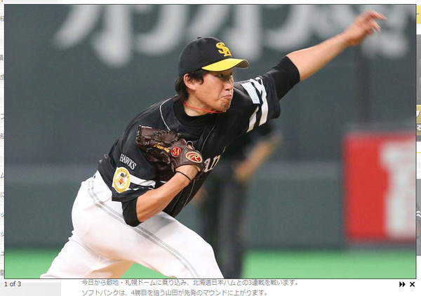 軟銀的先發投手山田大樹雖然失掉3分,但也撐到8局,9上隊友終於打回3分,幫助他拿下第四勝。賽後山田表示,這次的勝利要歸功隊友的打擊,希望下次能靠自己的投球拿下勝利,向隊友報恩。