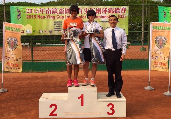 ▲卓宜萱/吳芳嫻勇奪南瀛盃國際青少年網球賽女雙金盃。(圖/海碩運動)