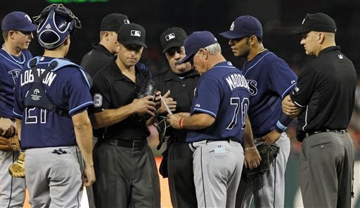 坦帕灣光芒今日(20日)以5比4一分擊敗華盛頓國民,但比賽後段發生一件小插曲,就是光芒中繼投手皮洛塔(Joel Peralta)因手套中有「異物」而一球未投就被驅逐出場。皮洛塔退場時還向國民點頭「致意」,「他們做得好,但還是輸球了。」