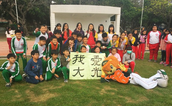 今日台南市大光國小很不一樣,早上升旗充滿小朋友歡笑的快樂聲音,在校園運動場出現統一獅萊恩吉祥物身影,萊恩也展現親和力,和學生一起打掃校園迎接每一天。