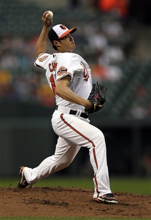金鶯隊台灣左投陳偉殷(圖/美聯社)29日出戰印地安人隊,7局上殷仔有狀況,1出局後連續讓兩人上壘,被換下場之後,接替的阿亞拉(Ayala)卻被擊出3分砲,讓殷仔多掉兩分,7局結束金鶯2比7落後,陳偉殷是敗投候選。