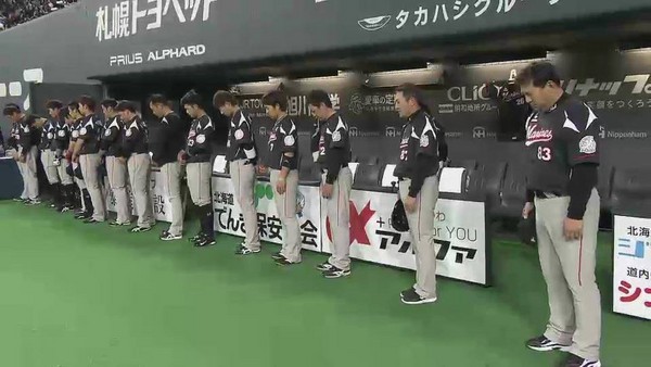 ▲日職羅德為熊本地震默哀。(圖/截自太平洋聯盟TV)