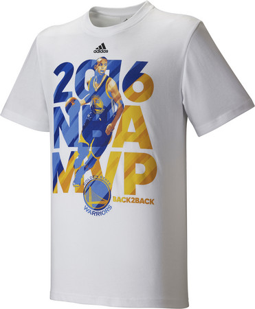 為紀念金州勇士隊控球後衛柯瑞(Stephen Curry)今年NBA賽季再奪MVP,adidas發表Curry專屬T恤向其致敬,以勇士隊主色系藍黃配色設計,完美結合金州勇士隊隊徽與Curry運球英姿,並印有象徵Curry 蟬聯NBA賽季MVP的「BACK2BACK」字樣。