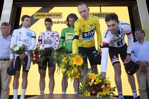 ▲環法各領騎衫持有人為尼斯恐怖攻擊死難者哀悼。(圖/達志影像/美聯社)
