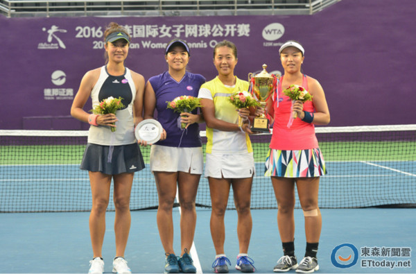 ▲李亞軒(右一)大連女網賽雙打冠軍頒獎照片(圖/截自大連女網賽官網)