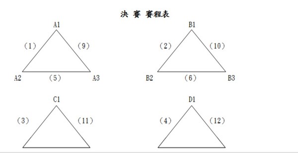 1、分區預賽:分組循環賽每場比賽20分鐘,分為上、下兩個半場,中場無休息時間。