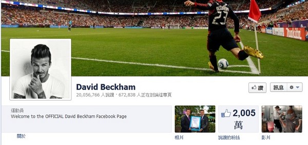 ▼在開幕典禮亮相的貝克漢,擁有超過2000萬名的臉書粉絲。(圖/翻攝自貝克漢粉絲團)