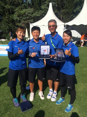 ▲倪大智教練(右二)與女子射箭團隊。(圖/倪大智教練提供)