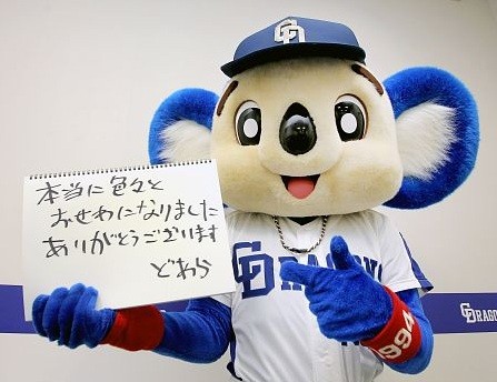 中日龍監督落合博滿與高層交惡,不過和吉祥物「DOALA」有相當不錯的交情,而落合在任期滿後正式卸任,就不捨的「人」就屬DOALA,21日「他」特別寫下離別感言,謝謝落合過去為中日的付出。