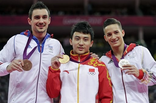 7日進行的倫敦奧運體操男子雙槓項目,大陸的馮喆以15.966分奪得金牌,這也是大陸代表隊在本屆奧運的第32面金牌;德國的馬賽爾(Marcel Nguyen)和法國的塞伯特(Hamilton Szbot)則分別以15.800分、15.566分拿下銀牌及銅牌。