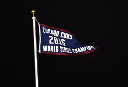 ▲ 2017小熊主場開幕戰升起冠軍旗。(圖/達志影像/美聯社)