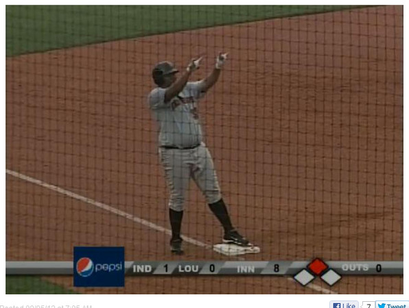 8局上迪亞茲也成為首位上場的打者,他擊出滾地球造成一壘手失誤,站上二壘,而一壘手正是當時還在3A進行復健賽的渥托(Joey Votto)。接下來他老兄竟然上演了盜三壘的戲碼。